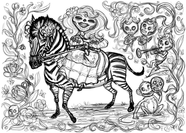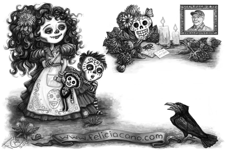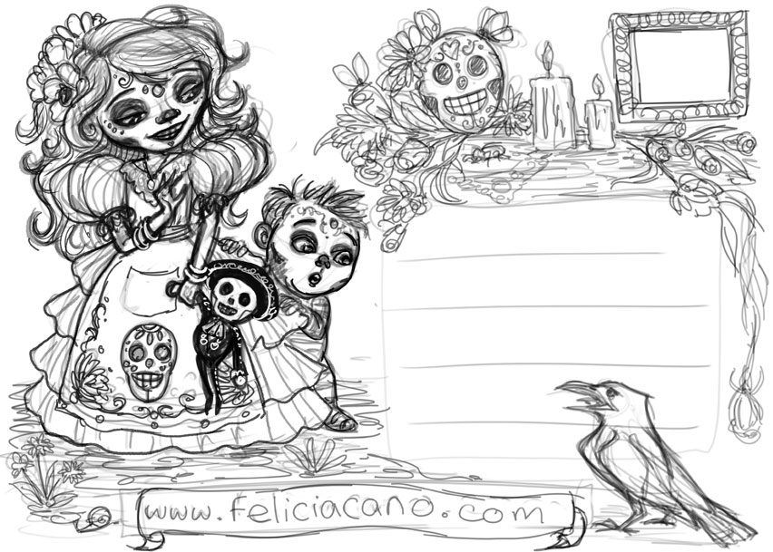 Day of the DeadJuly 9, 2016 in Process by Felicia Cano Day of the Dead Sketch, Digital Day of the Dead Color Study, Digital Day of the Dead Final, Digital Day of the Dead Back Sketch, Digital Day of the Dead Back Final, Digital Related