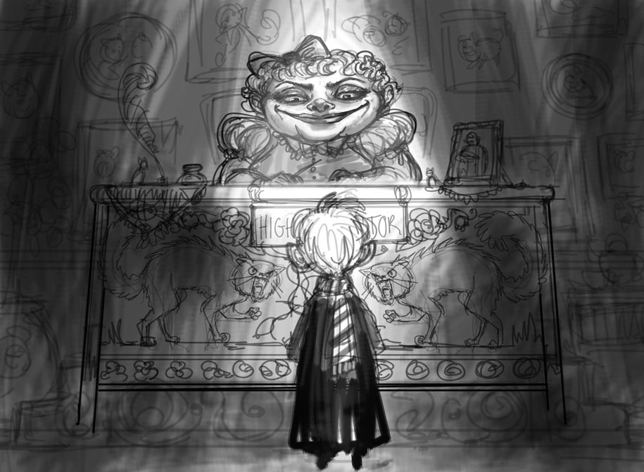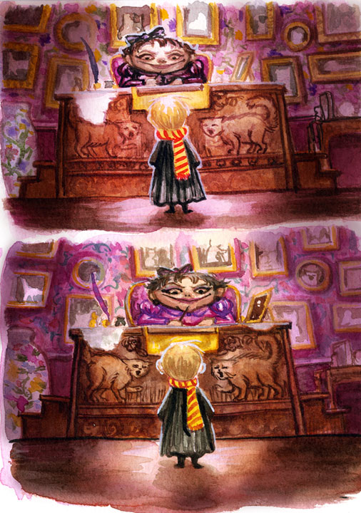 Umbridge’s OfficeJuly 9, 2016 in Process by Felicia Cano Digital Sketch Tightened Drawing Watercolor Color Studies Watercolor Pattern Studies Final Watercolor with Digital touch-ups Related